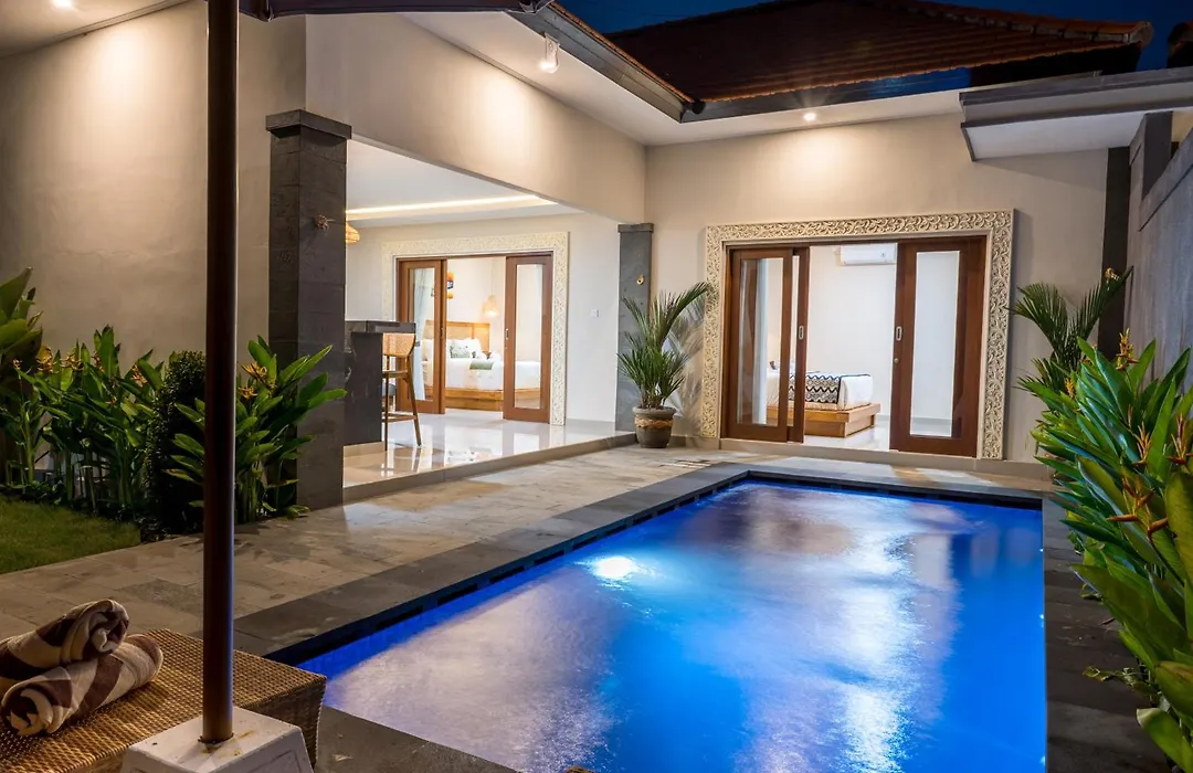 La villa incluye una cocina completa, además de una zona de comedor y un comedor al aire libre para que los huéspedes puedan cocinar por sí mismos. También puedes utilizar hervidor eléctrico, nevera y cristalería para prepararte la comida. Los huéspedes pueden cenar en el restaurante Warung Ocha's, a unos 5 minutos a pie de este alojamiento. La estación de autobuses Halte Seminyak está a unos cuantos pasos de este lugar, lo que permite a los huéspedes descubrir fácilmente Seminyak.